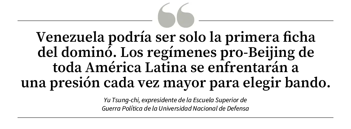 "Venezuela puede ser solo la primera ficha del dominó", dijo Yu. "Los regímenes pro-Beijing de toda América Latina se enfrentarán a una presión cada vez mayor para elegir bando".