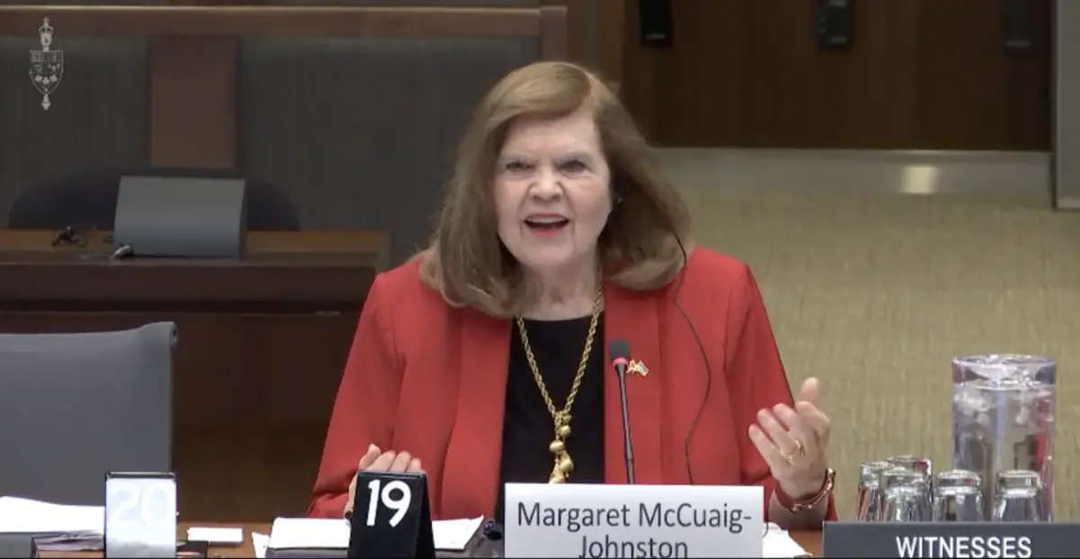 Margaret McCuaig-Johnston testifica ante el comité de industria de la Cámara de los Comunes el 26 de marzo de 2025. (Cámara de los Comunes/Captura de pantalla vía The Epoch Times)'Propaganda'