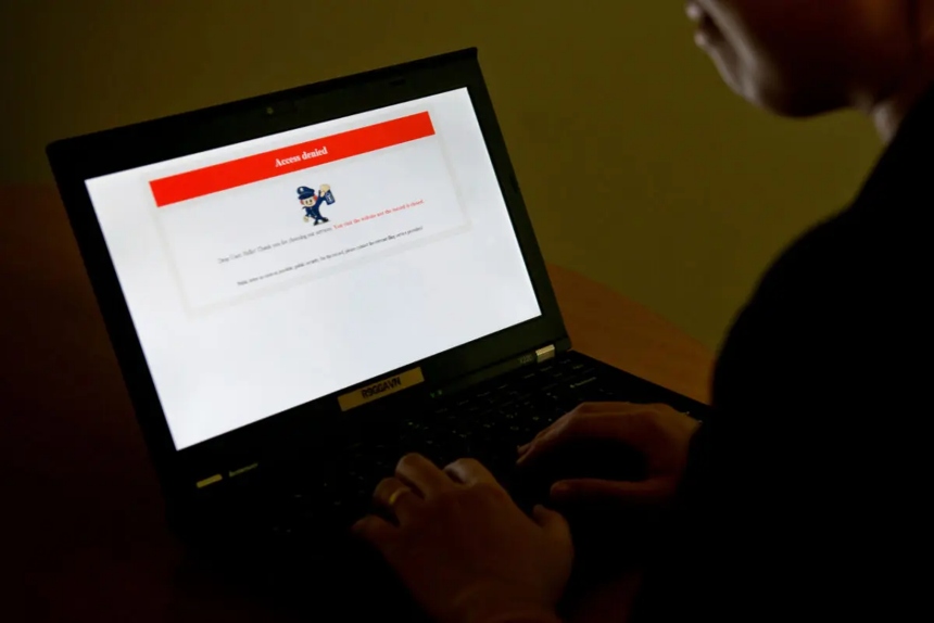 Una pantalla de un ordenador portátil con un mensaje de denegación de acceso en la página de inicio de "Annals of the Yellow Emperor" en Beijing, el 4 de enero de 2013. (STF/AFP a través de Getty Images)Solicitud de retirada del proyecto de ley
