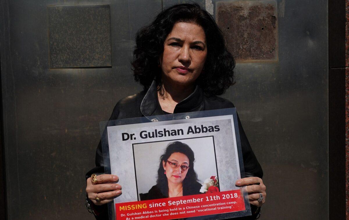 Rushan Abbas, directora ejecutiva de Campaign for Uyghurs, sostiene una foto de su hermana, Gulshan Abbas, que actualmente se encuentra encarcelada en un campo chino, durante una manifestación en Nueva York el 22 de marzo de 2021. (Timothy Clary/AFP vía Getty Images)"Esto es algo a lo que todo el mundo debería prestar atención, y la claridad moral comienza ahí, al reconocerlo, denunciarlo y hablar de ello", declaró a The Epoch Times.