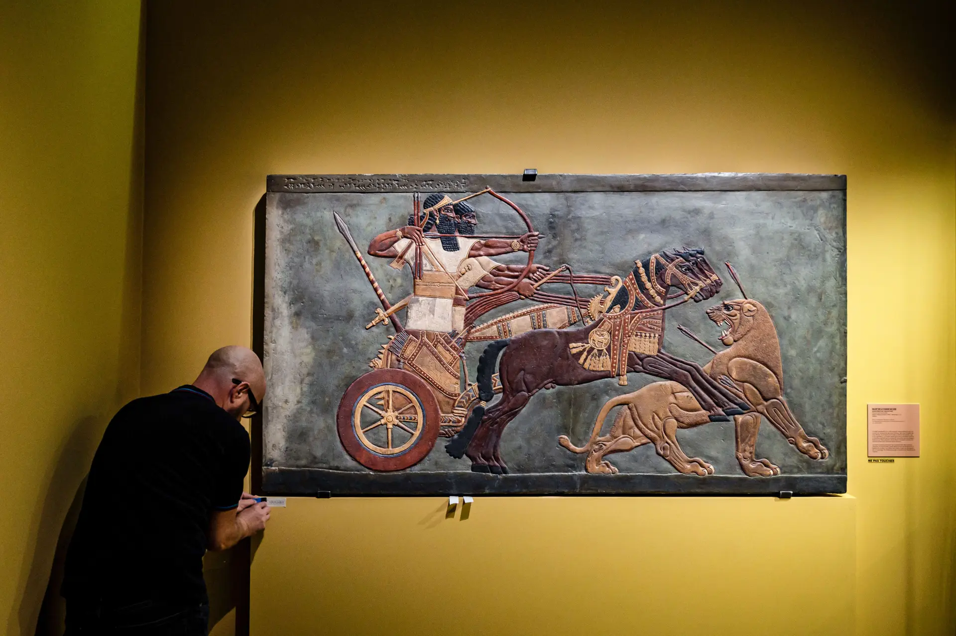 Un empleado de la cueva Chauvet 2 prepara los últimos detalles en la víspera de la inauguración de la exposición "De leones y hombres. Mitos felinos: 400 siglos de fascinación", en Vallon Pont d'Arc, en el departamento de Ardèche, al sur de Lyon, Francia, el 4 de abril de 2019. (Jeff Pachoud/AFP vía Getty Images)Y no fue solo a través del dibujo como nuestros ancestros humanos se expresaron artísticamente. En las últimas décadas se descubrieron numerosos instrumentos musicales, principalmente flautas fabricadas con huesos de animales, algunos de los cuales se remontan a decenas de miles de años.