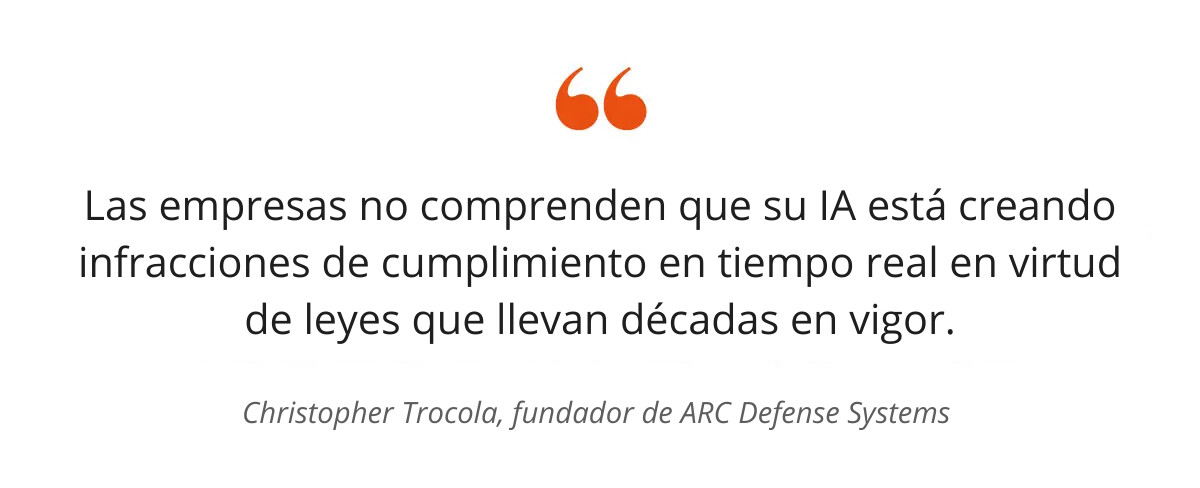 El verdadero problema, según Trocola, es que "las empresas no comprenden que su IA está generando infracciones de cumplimiento en tiempo real en virtud de leyes que llevan décadas en vigor".