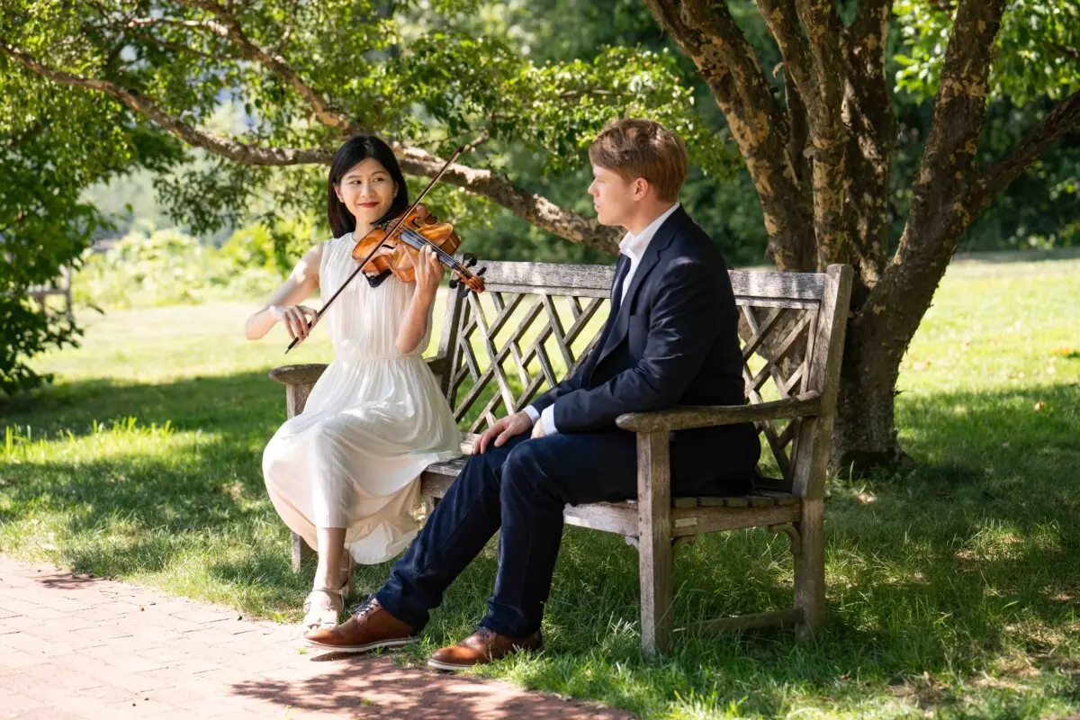 Perry aparece en la foto con su esposa Yitong Liu, violista de Shen Yun, en Boscobel House and Gardens, en Garrison, Nueva York. (Samira Bouaou para American Essence)