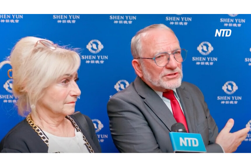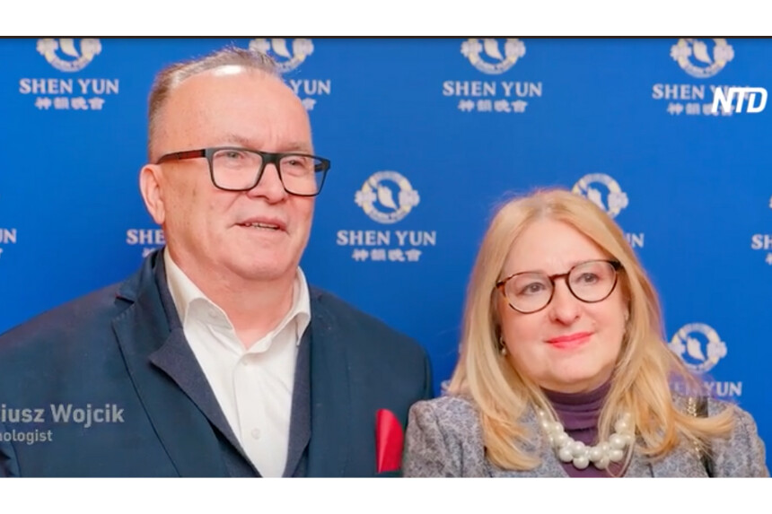 La psicóloga Aurelia Wojcik (Derecha) y su esposo Dariusz Wojcik, (izquierda) ambos psicólogos vieron el espectáculo de Shen Yun en Polonia el 10 de enero. (Cortesía de NTD)Ademas de leyendas y mitos antiguos, los artistas de Shen Yun también representa historias de valentía contemporánea frente a la opresión comunista, un tema con el que el público polaco se identificó profundamente.