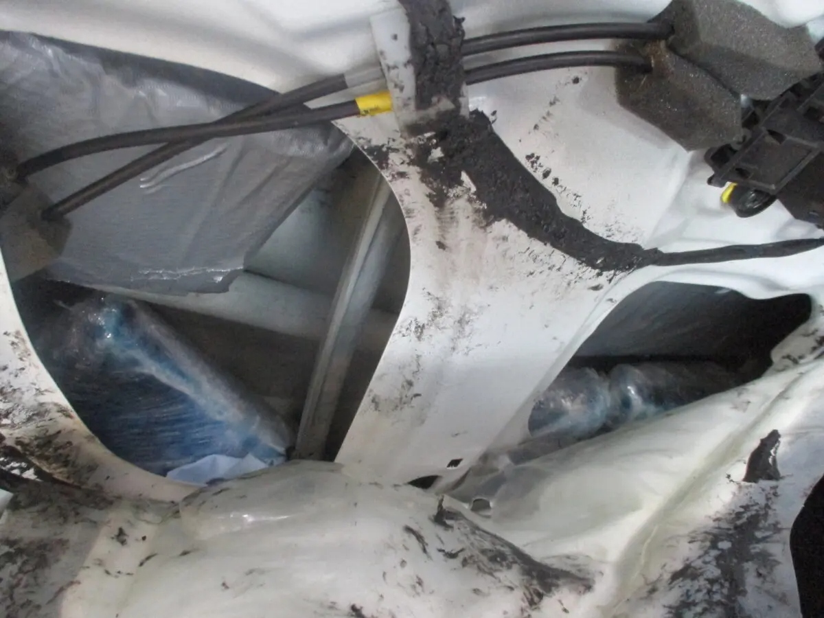 Se muestran narcóticos ilegales ocultos en las puertas del vehículo del conductor, en el Puerto de Entrada de San Ysidro el 7 de abril de 2026. Agentes de la Patrulla Fronteriza incautaron más de 60 libras de cocaína a un ciudadano estadounidense. (Servicio de Aduanas y Protección Fronteriza de EE. UU.)Durante la inspección secundaria, la CBP indicó que utilizó tecnología de imágenes no intrusiva que reveló "anomalías" dentro de las puertas del Honda Civic 2020 del conductor. Además, un equipo canino alertó a los oficiales sobre la presencia de narcóticos.