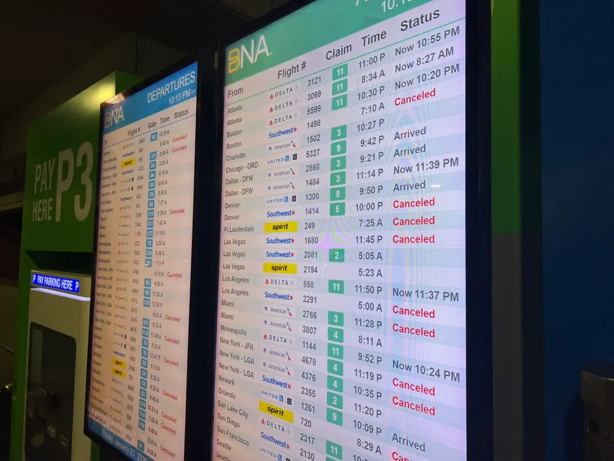 Más de 3,700 vuelos fueron cancelados este sábado y los más afectados fueron el Aeropuerto Internacional de Dallas-Fort Worth, el Aeropuerto Internacional de Nashville, el Aeropuerto Dallas Love Field, el Aeropuerto Internacional de Charlotte/Douglas y el Aeropuerto Internacional Hartsfield-Jackson en Georgia.