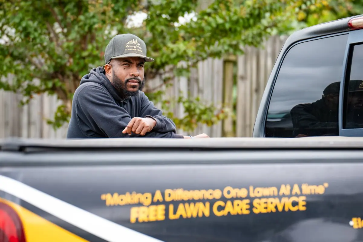 Rodney Smith Jr., fundador de Raising Men Lawn Care Service, delante de su camioneta en Madison, Alabama, el 28 de octubre de 2025. (Samira Bouaou/The Epoch Times).Las solicitudes de ayuda aumentaron en las redes sociales después de que anunciara lo que estaba haciendo. Como necesitaba su propia cortadora de césped, Smith encontró un modelo de segunda mano por 100 dólares en Craigslist.