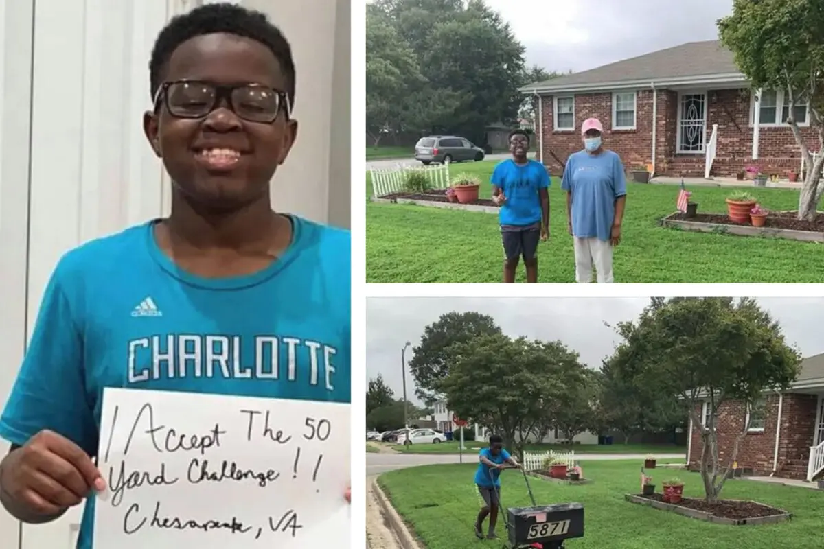 Phoenix Browne, de Chesapeake, Virginia, cortó 50 céspedes de forma gratuita tras inscribirse en el reto "50 Yard Challenge" de Raising Men Lawn Care Service. (Cortesía de Sheldon Browne)."Una vez que cortan 50, conduzco hasta donde se encuentren en el país y les regalo una cortadora de césped nueva", explicó. "Esa es la fuente de ingresos de la organización".