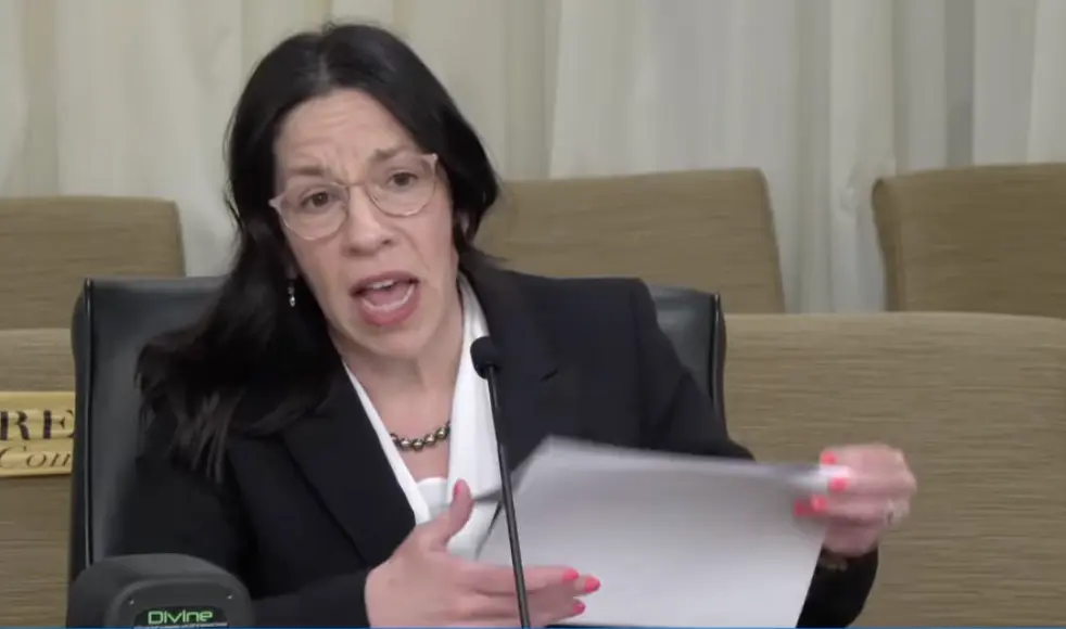 Shireen Gandhi, comisionada del Departamento de Servicios Humanos de Minnesota, responde preguntas en una reunión del Comité de Política de Prevención del Fraude y Supervisión de la Agencia Estatal en St. Paul, Minn., el 7 de abril de 2026. Captura de pantalla a través de la transmisión en vivo de The Epoch Times/La Cámara de Representantes de MinnesotaLegisladora insta: "Trace una línea en la arena"