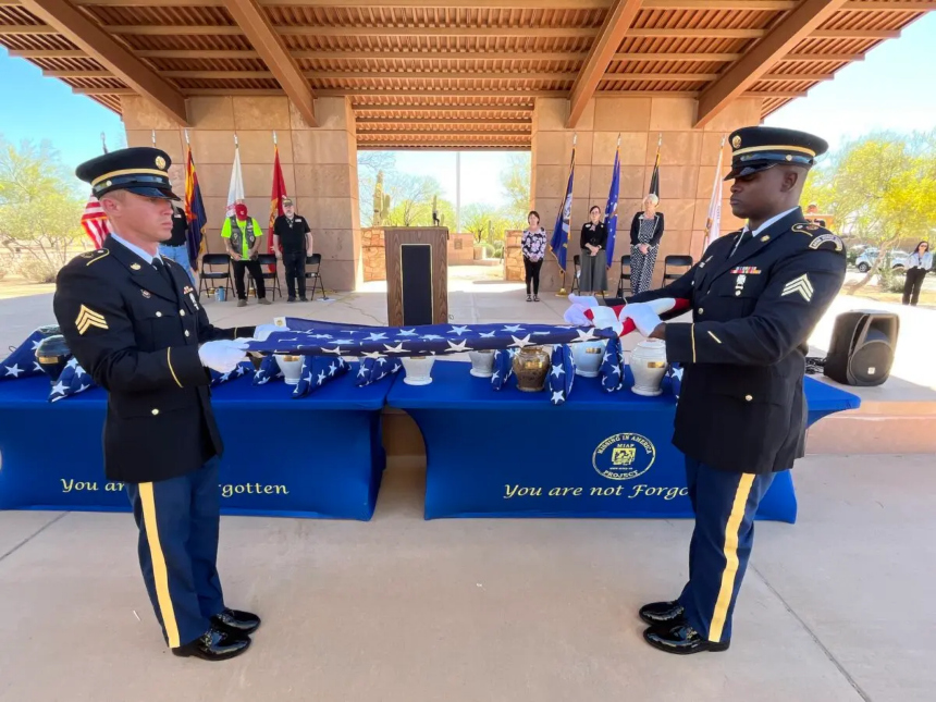El 18 de marzo, 14 veteranos y un cónyuge recibieron todos los honores militares en una ceremonia de entierro celebrada en el Cementerio Nacional Conmemorativo de Arizona, en Phoenix.Al igual que las de miles de otros veteranos, sus cenizas permanecieron en el olvido durante años antes de ser identificadas y, en un caso, reunirse con un ser querido.