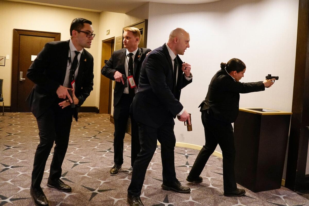 Agentes federales reaccionan tras los disparos en el hotel donde se celebró la cena anual de la Asociación de Corresponsales de la Casa Blanca en Washington el 25 de abril de 2026. (Nathan Howard/Getty Images)En julio de 2024, Trump recibió un disparo en la oreja por parte de Thomas Crooks, de 20 años, quien fue abatido rápidamente por un equipo de francotiradores del Servicio Secreto en Butler, Pensilvania, durante un mitin de campaña. El incidente suscitó dudas sobre el dispositivo de seguridad que rodeaba a Trump, lo que finalmente condujo a la dimisión de la entonces directora del Servicio Secreto, Kimberly Cheatle.