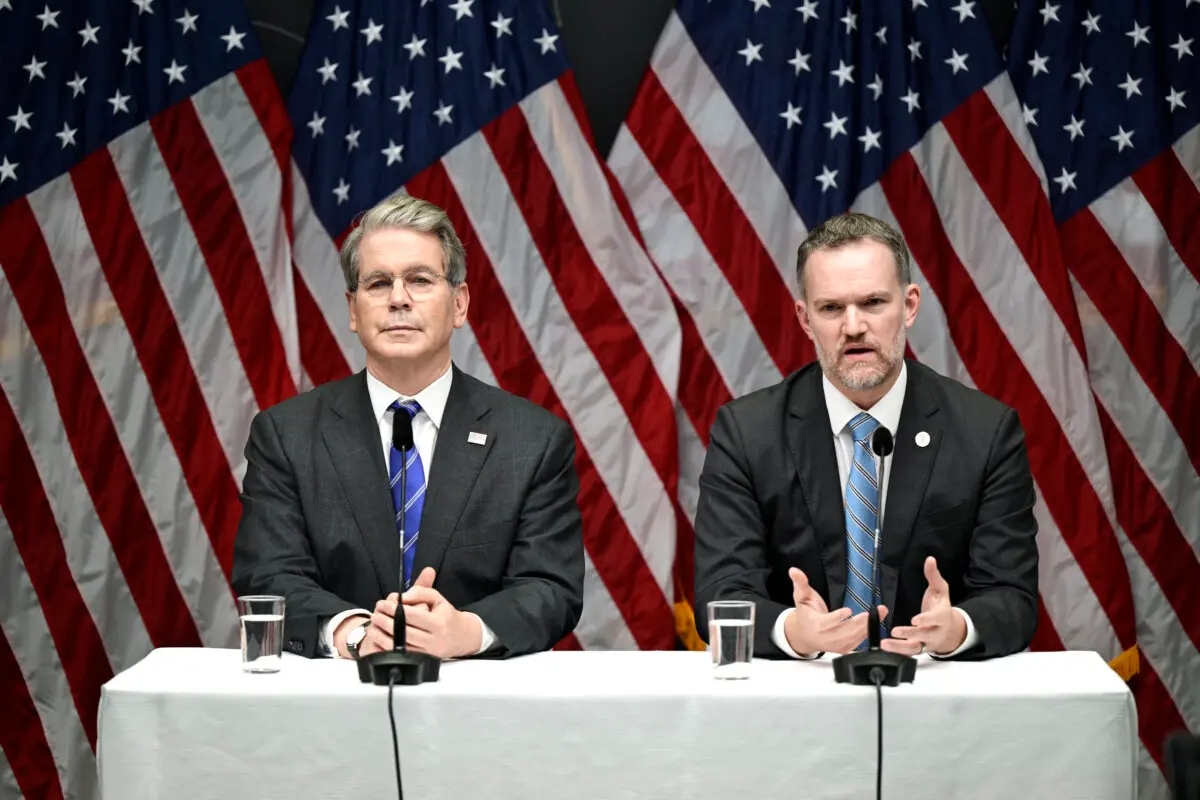 El secretario del Tesoro, Scott Bessent (izquierda), y el representante comercial, Jamieson Greer, ofrecen una conferencia de prensa en Rosenbad, Suecia, tras las negociaciones comerciales entre Estados Unidos y China en Estocolmo el 29 de julio de 2025. (Magnus Lejhall/TT News Agency/AFP vía Getty Images)"En los próximos años, podríamos recaudar billones de dólares, pero el verdadero objetivo de los aranceles es reequilibrar el comercio y hacerlo más justo", declaró Bessent en una entrevista concedida el 9 de noviembre al programa "This Week" de la cadena ABC.