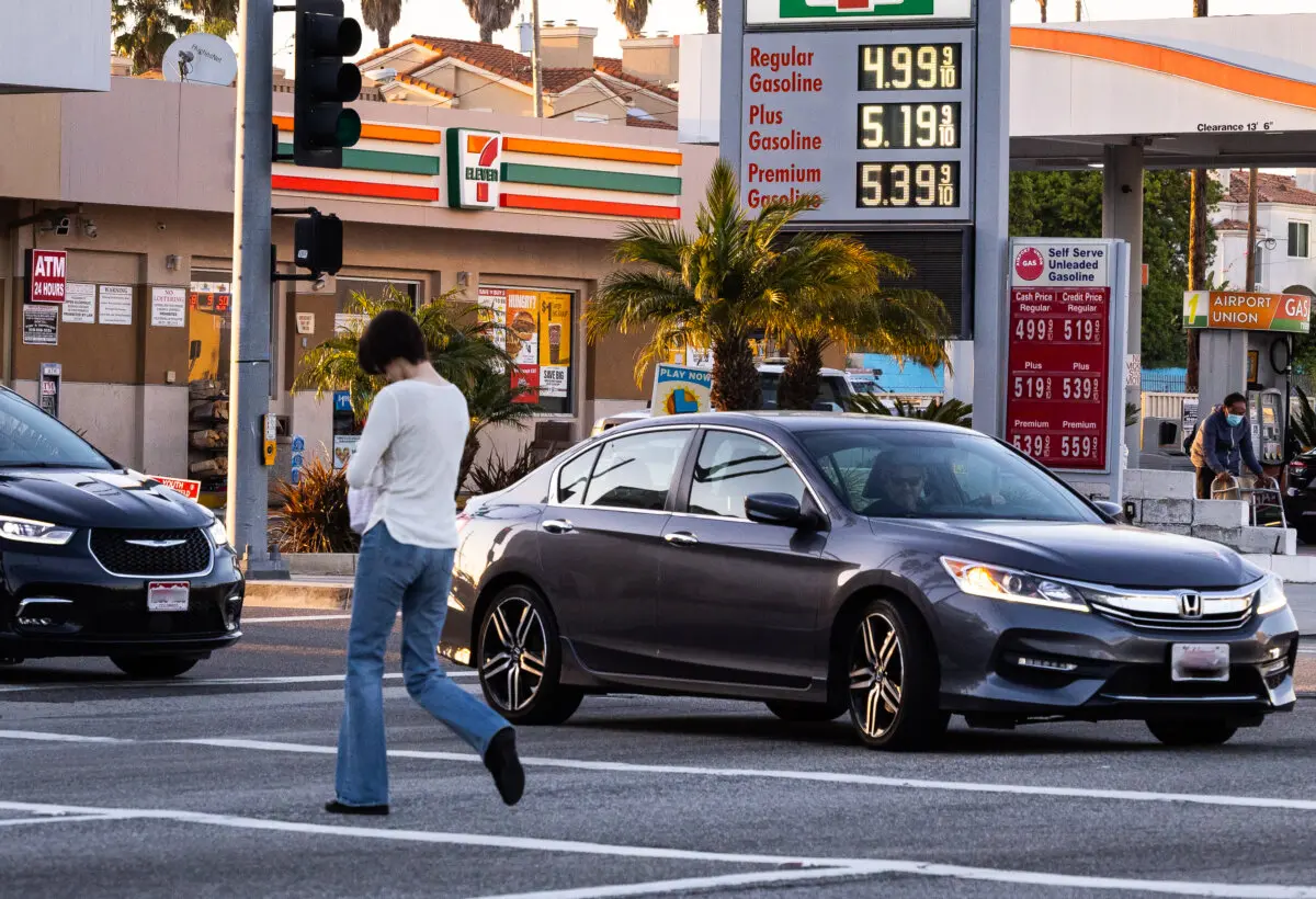 El tráfico circula junto a una gasolinera en Los Ángeles el 11 de marzo de 2026. (John Fredricks/The Epoch Times).El gasóleo —la principal fuente de combustible en el transporte marítimo y de mercancías a nivel mundial— alcanzó esta semana los 5 dólares por galón por primera vez desde 2022.