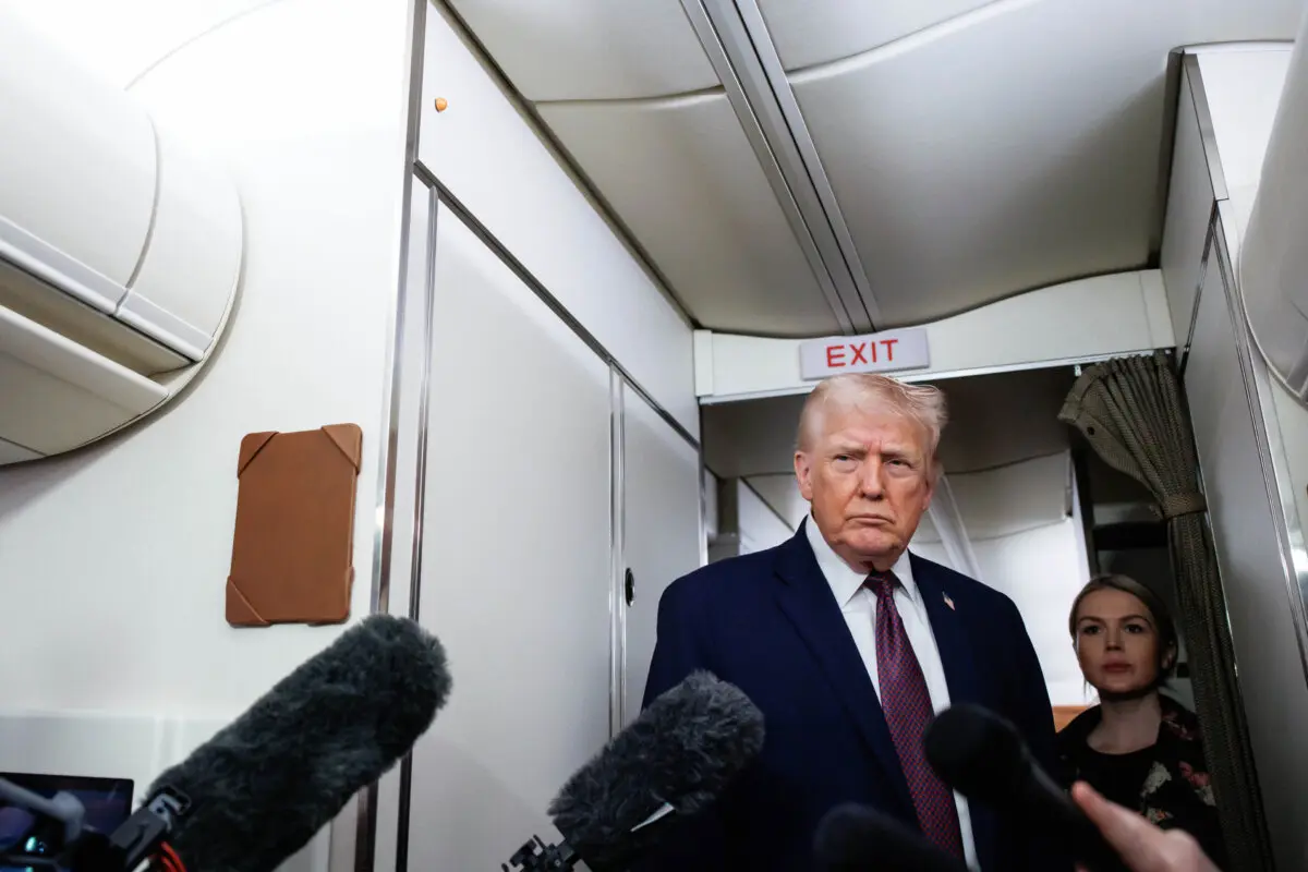 El presidente Donald Trump responde preguntas de la prensa a bordo del Air Force One el 11 de enero de 2026. (Samuel Corum/Getty Images)"Vamos a dirigir el país hasta que podamos hacer una transición segura, adecuada y sensata. Por lo tanto, no queremos involucrarnos en que alguien más ocupe el cargo", dijo Trump en aquel momento.