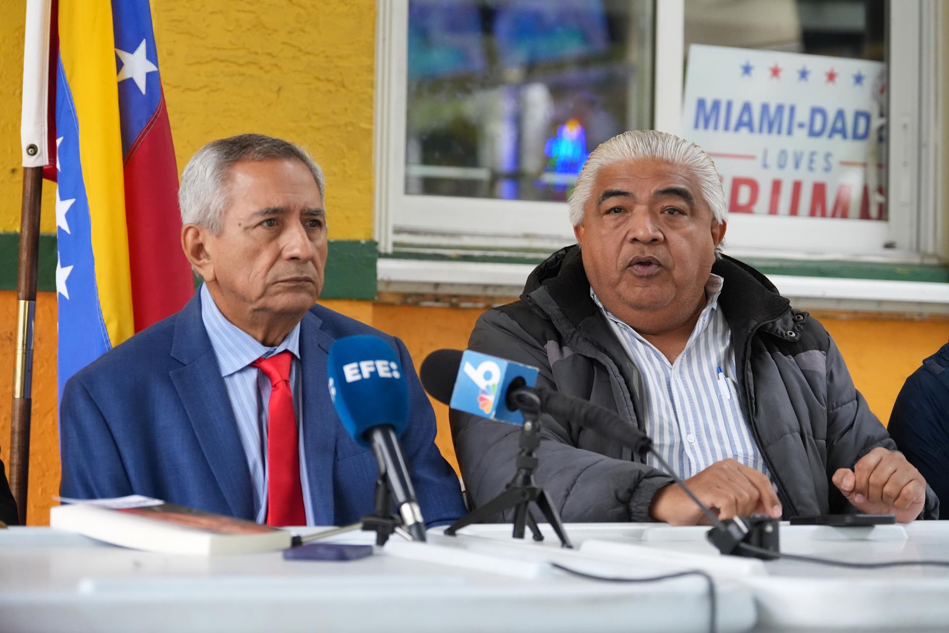 El presidente de la Coalición Internacional por Venezuela, Freddy Solorzano (d), habla junto al exdiputado venezolano Pablo Medina durante una rueda de prensa el 21 de enero, en Doral, Florida, Estados Unidos. (EFE/ Alberto Boal)Maduro y Flores comparecieron el 5 de enero en un tribunal en Manhattan, tras una imputación por varios cargos de conspiración para cometer narcoterrorismo, conspiración para llevar drogas ilícitas hacia Estados Unidos, posesión de armas y dispositivos destructivos, así como a la posibilidad de pasar décadas en prisión.