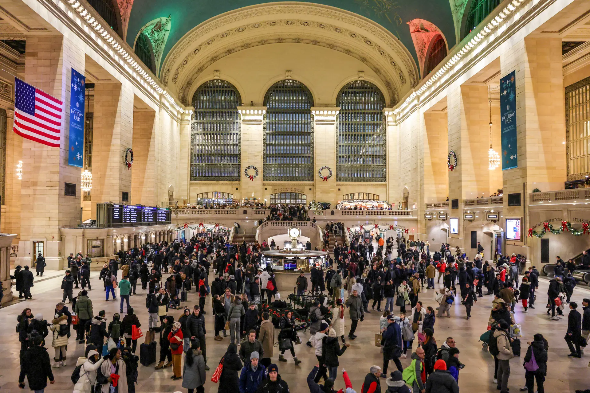 Personas avanzan por la estación Grand Central en la ciudad de Nueva York, el 23 de diciembre de 2025. Angela Weiss/AFP vía Getty Images
