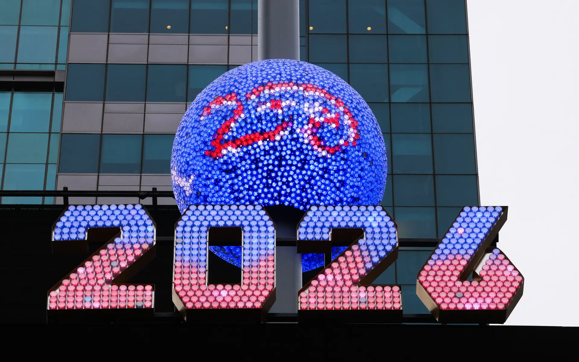 Números de 7 pies de altura que presentan “2026” se exhiben durante una ceremonia de iluminación en One Times Square en la ciudad de Nueva York, el 26 de diciembre de 2025, antes de la celebración de Nochevieja de este año en Times Square. Timothy A. Clary/AFP vía Getty Images