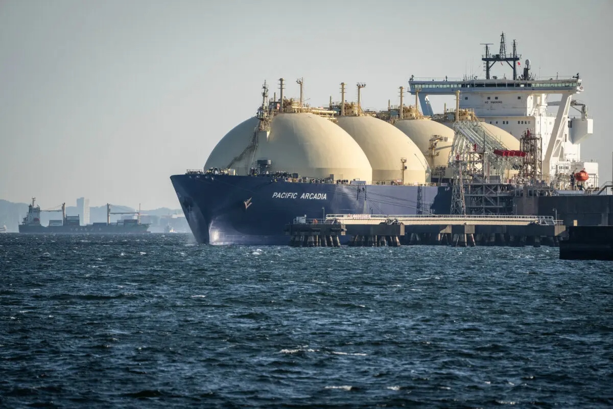 Un buque metanero (GNL) atracado en un muelle de GNL en Kawasaki, Japón, el 8 de abril de 2026. (Yuichi Yamazaki/AFP vía Getty Images)La producción mundial de GNL se redujo un 8 % interanual, impulsada por la disminución de las exportaciones de Catar y los Emiratos Árabes Unidos.