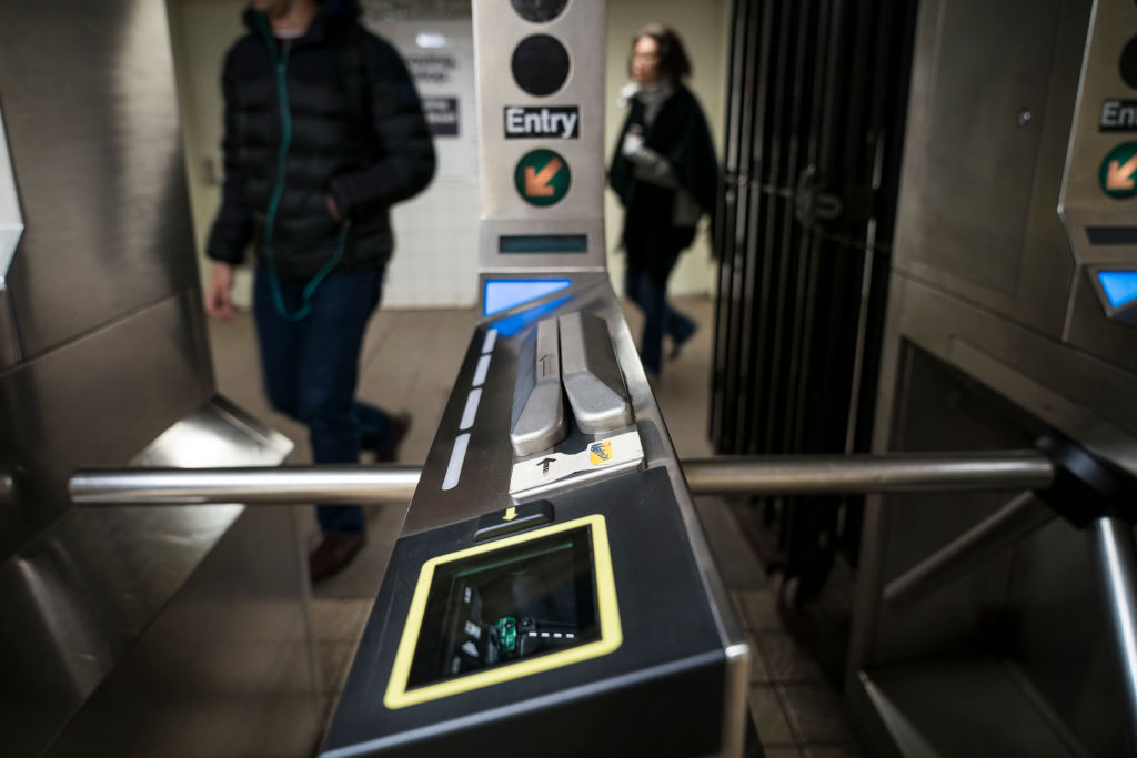 Pasajeros pasan por los torniquetes de la estación de metro Fulton Center, el 27 de febrero de 2019 en la ciudad de Nueva York. (Foto de Drew Angerer/Getty Images)