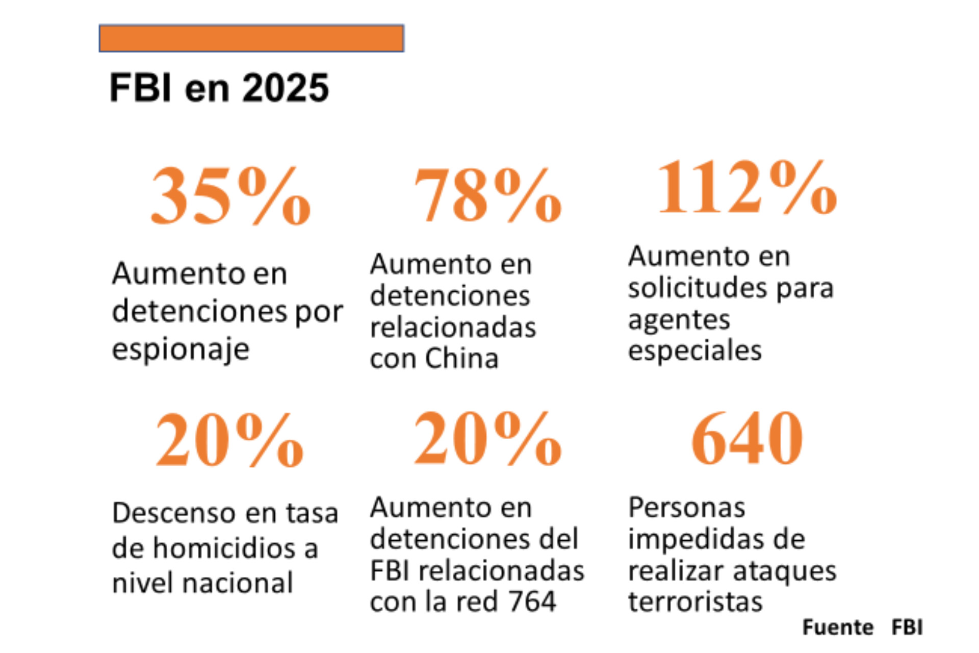 "El resultado fue el año más productivo en la historia moderna del FBI, medido en términos de detenciones, desartulaciones, recuperaciones de víctimas y ahorro para los contribuyentes", afirmó Patel. "Así es como se ve la reforma, y hay más por venir".
