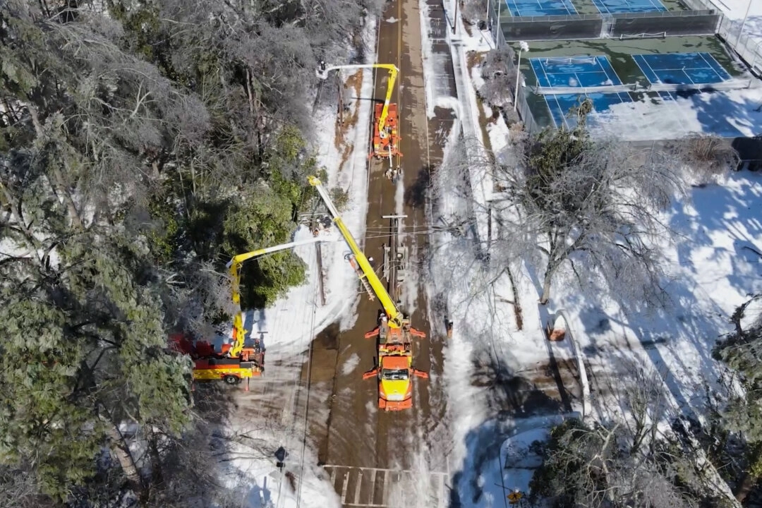 Esta imagen, tomada de un video publicado por la ciudad de Oxford, Mississippi, muestra a equipos trabajando en líneas eléctricas el 27 de enero de 2026. (Ciudad de Oxford, Mississippi, vía AP)Los meteorólogos advierten que el clima bajo cero persistirá en el este de Estados Unidos durante febrero.