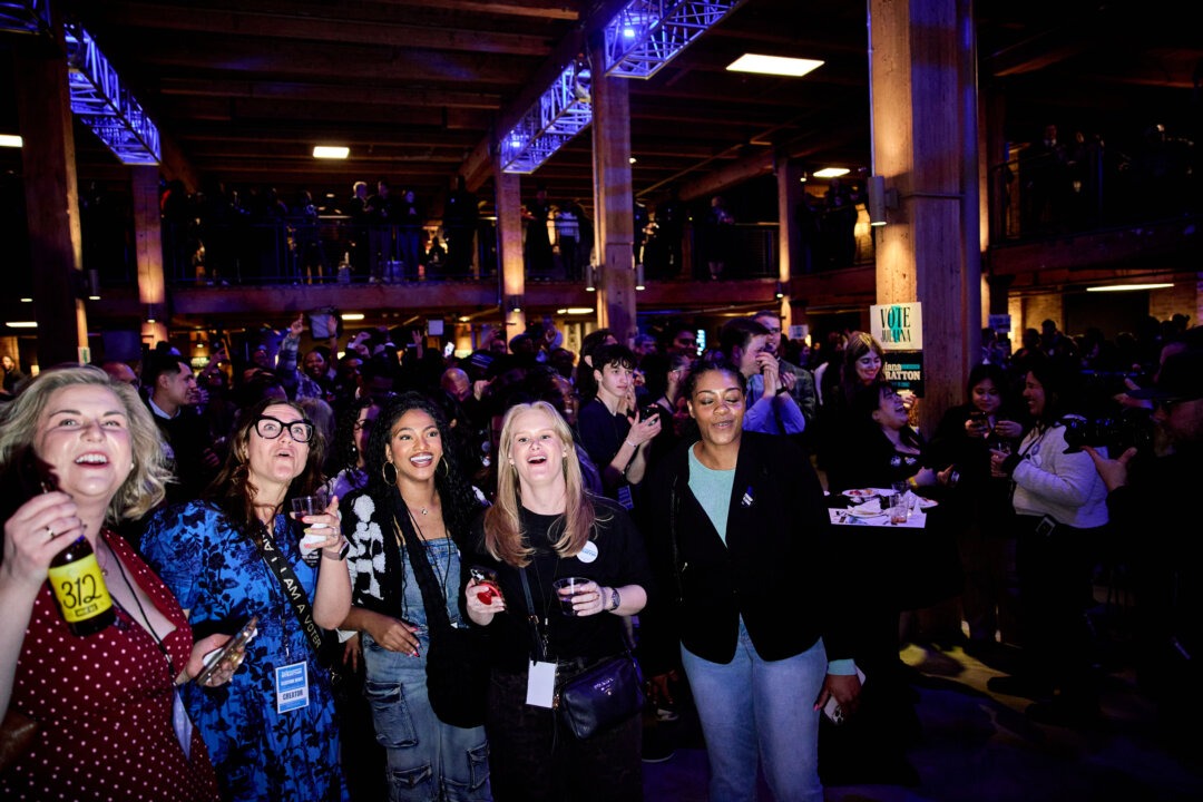 Fiesta para seguir los resultados organizada por la vicegobernadora de Illinois, Juliana Stratton, en Chicago el 17 de marzo de 2026. Stratton ganó las primarias demócratas al Senado. (Nathaniel Smith para The Epoch Times).