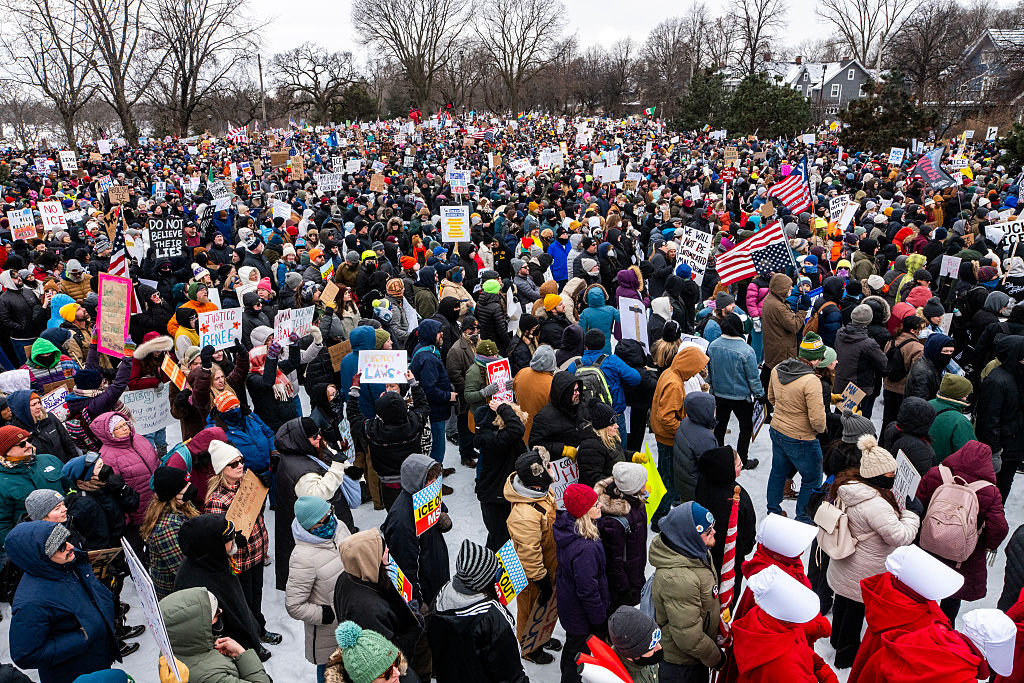 El 10 de enero decenas de miles de manifestantes anti-ICE salieron a las calles hacia el Parque Powderhorn y sus alrededores. El mismo sábado, la representante Ilhan Omar (demócrata por Minnesota) y otros dos demócratas de la Cámara de Representantes por Minnesota dijeron haber sido expulsados rápidamente de una instalación del ICE en el Edificio Federal Bishop Henry Whipple.