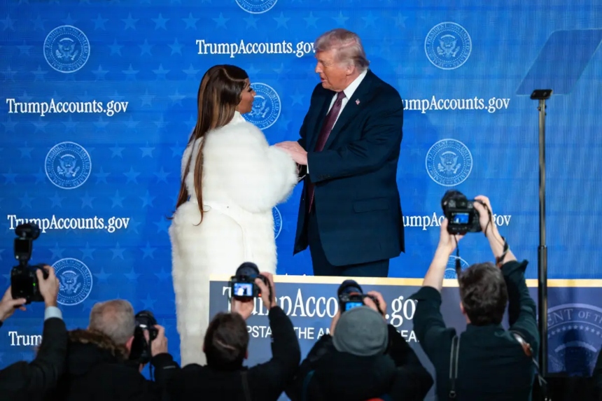 La compositora, también conocida como la "reina del rap", se unió a Trump en una cumbre para lanzar sus cuentas de inversión para niños a primera hora del día.
