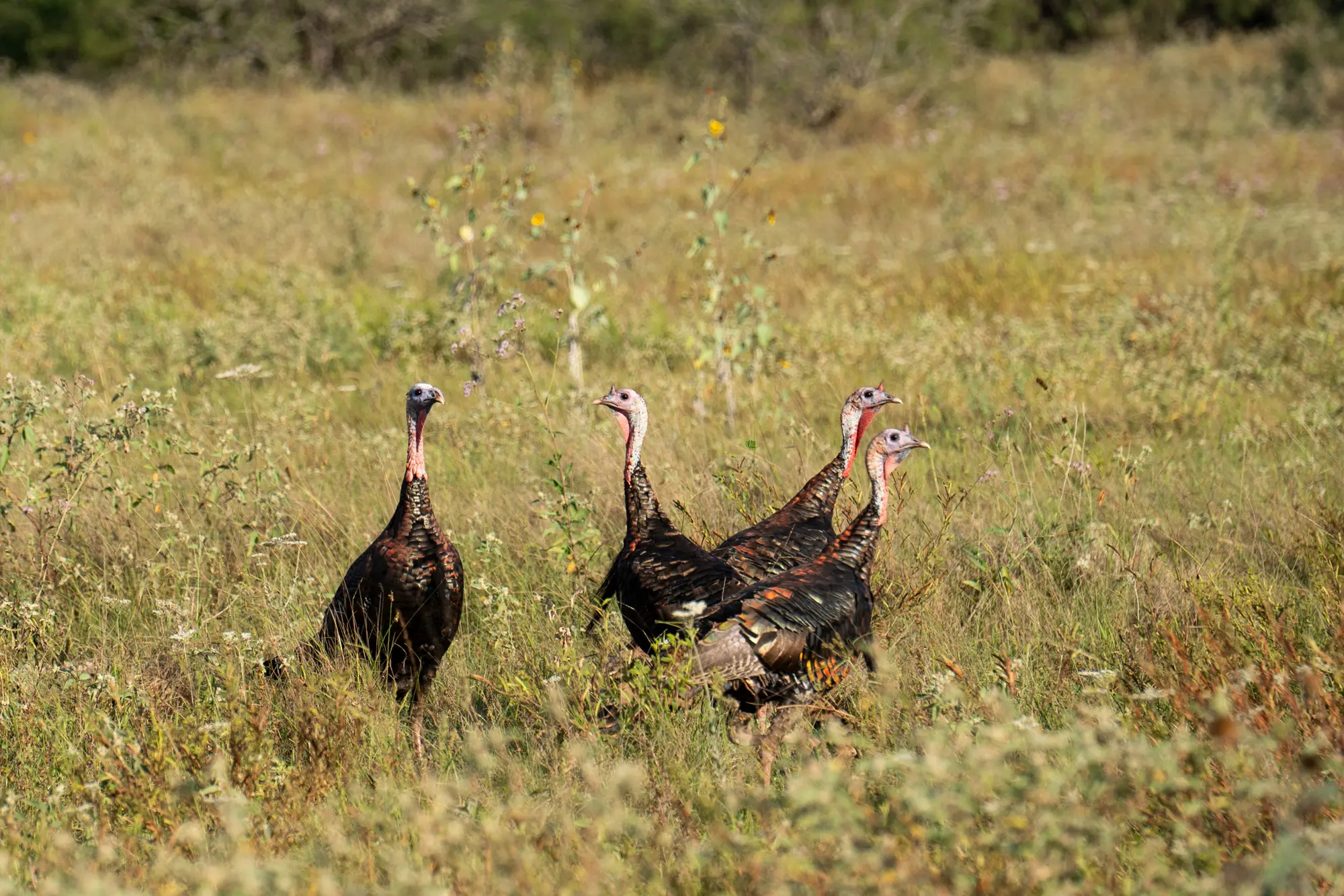 (Abajo a la derecha) Pavo salvaje en el rancho de Michael Vickers en el condado de Brooks, Texas, el 10 de octubre de 2025. Samira Bouaou/The Epoch Times