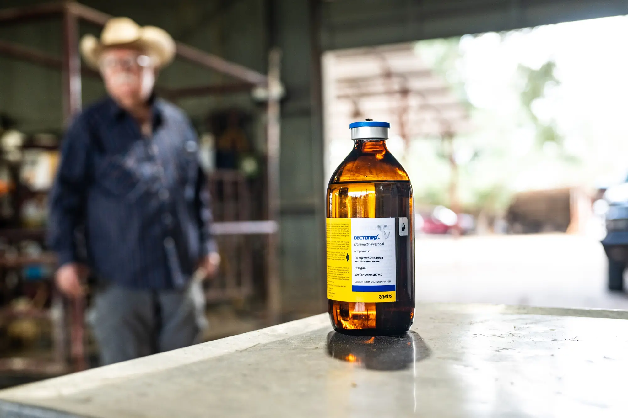 Dectomax, un antiparasitario, en el Hospital Veterinario Las Palmas de Falfurrias, Texas, el 8 de octubre de 2025. (Abajo a la derecha)