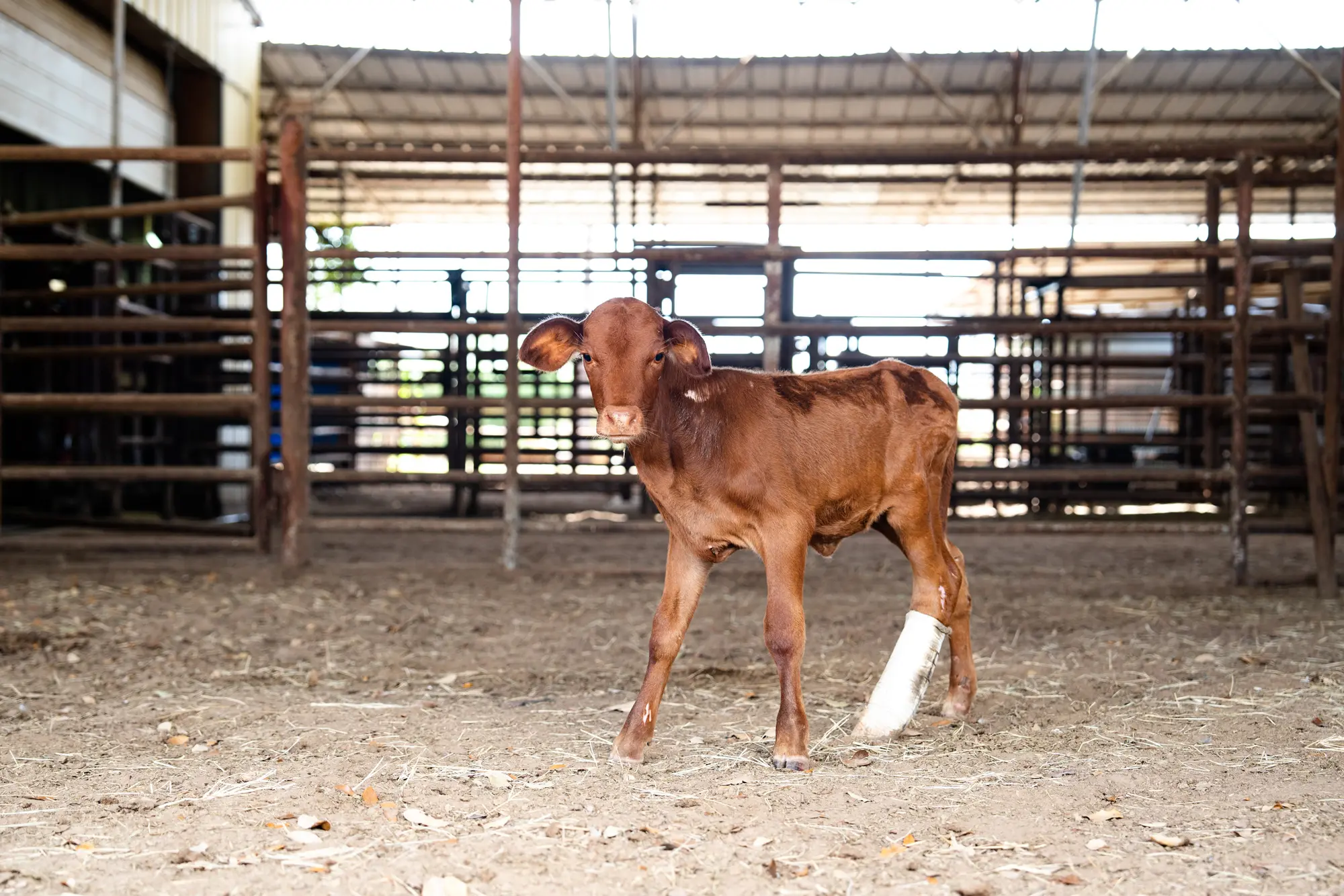 Un ternero con una pierna escayolada en el Hospital Veterinario Las Palmas de Falfurrias, Texas, el 8 de octubre de 2025. Samira Bouaou/The Epoch Times