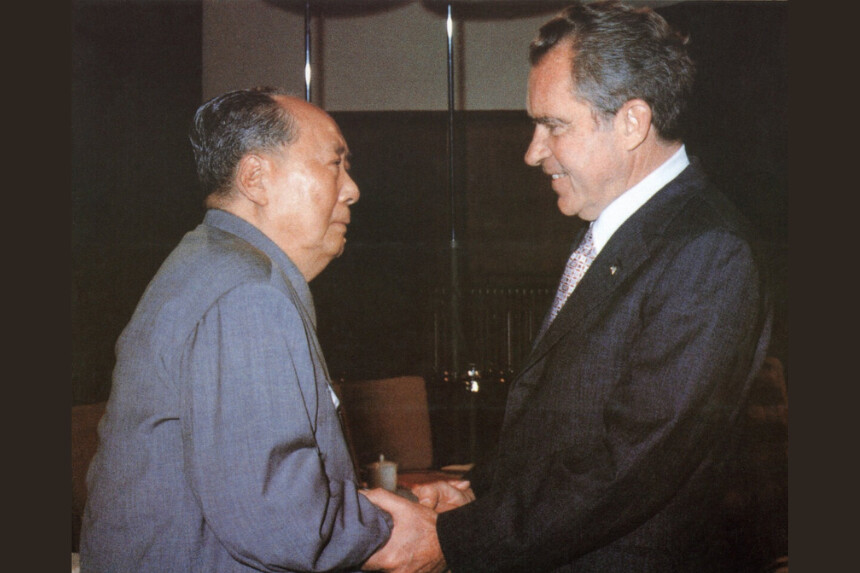 El líder chino Mao Zedong (izquierda) saluda al presidente estadounidense Richard Nixon en Beijing el 21 de febrero de 1972. (AFP vía Getty Images).Ecos del colapso soviético