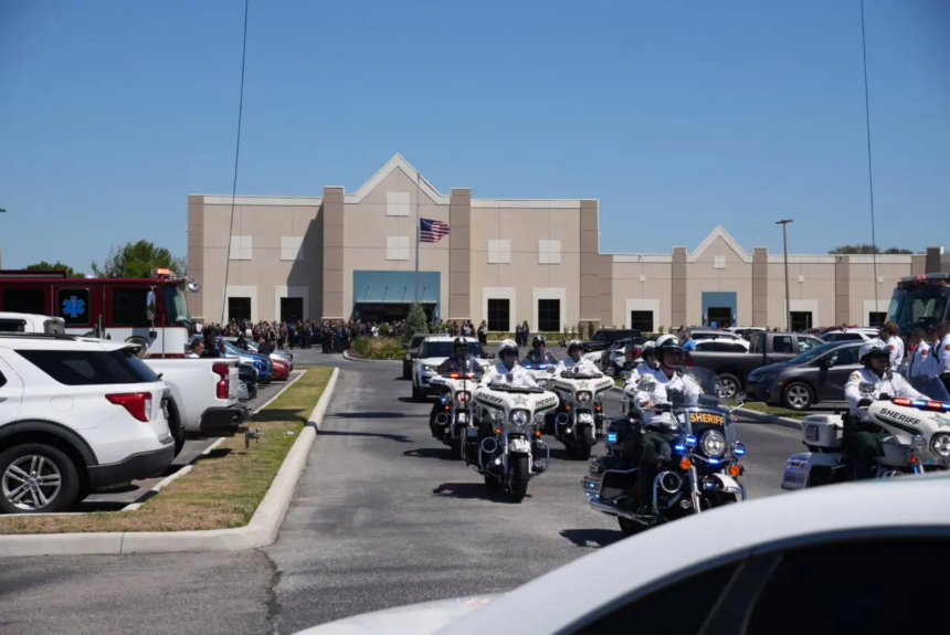 Una caravana sale del Haven Worship Center para escoltar los restos del comandante Cody Khork, uno de los soldados fallecidos en la Guerra de Irán. Se celebró un funeral por Khork en Winter Haven, Florida, el 21 de marzo de 2026. (Troy Myers/The Epoch Times)La vida y muerte del mayor Cody Khork