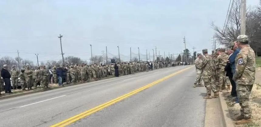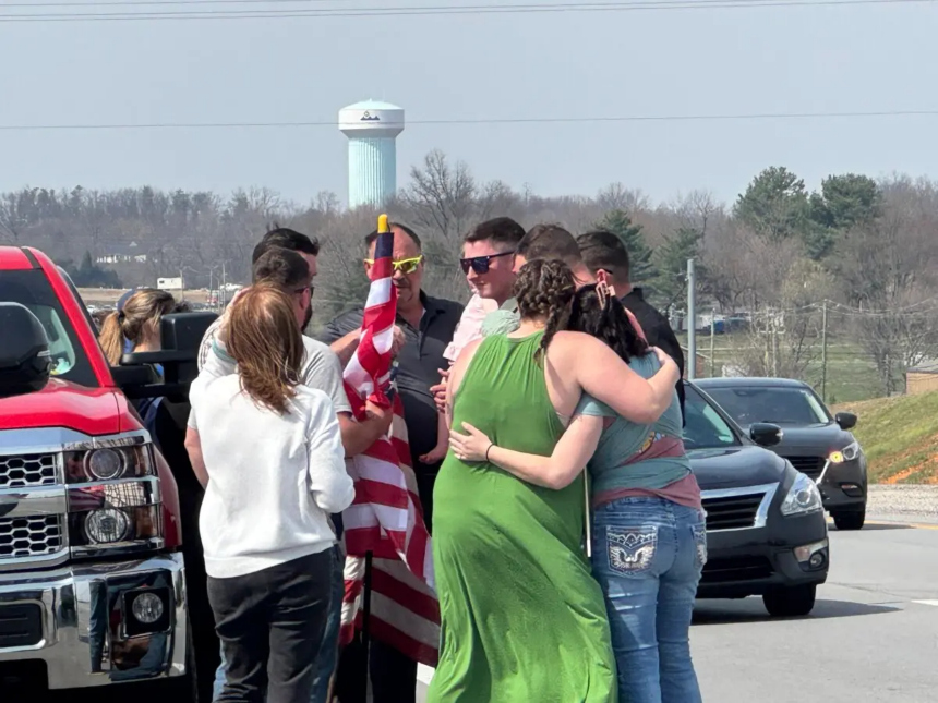 El 20 de marzo, un día antes de su funeral, un coche fúnebre que transportaba al soldado caído llegó a su condado natal, Hardin, a unos 72 kilómetros al sur de Louisville.
