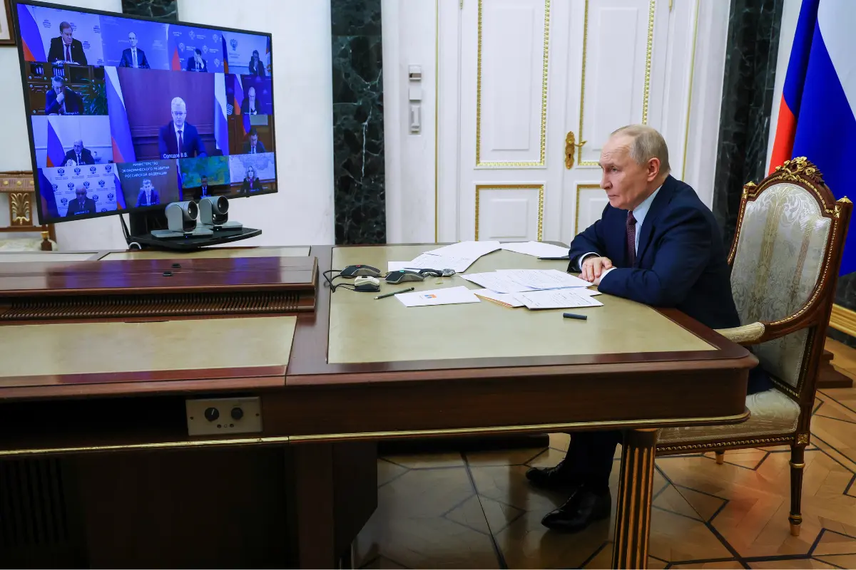 El presidente ruso, Vladímir Putin, asiste a una reunión del gabinete por videoconferencia en el Kremlin, en Moscú, Rusia, el 21 de enero de 2026. (Vyacheslav Prokofyev/Sputnik, Kremlin Pool Photo vía AP).Putin dijo a los miembros del consejo de seguridad que, según sus estimaciones, en relación con los precios del oro y en moneda actual, el precio de Groenlandia podría rondar los 1 mil millones de dólares.