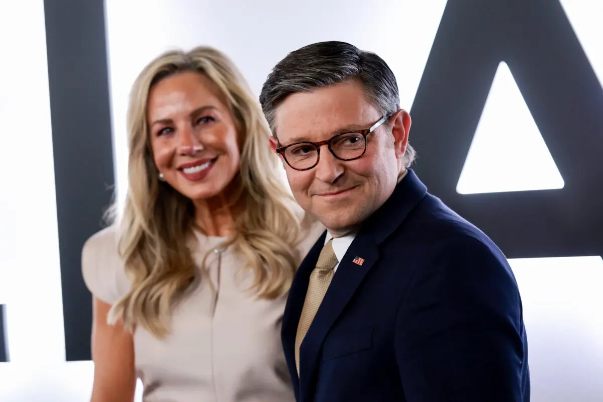 Kelly Lary y el presidente de la Cámara de Representantes, Mike Johnson (R-La.), asisten al estreno mundial de "Melania" de Amazon MGM en el Trump Kennedy Center de Washington el 29 de enero de 2026. (Dimitrios Kambouris/Getty Images)