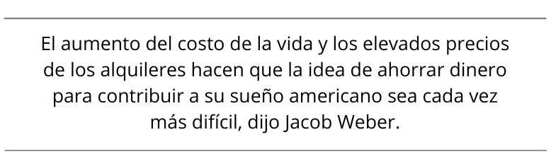 El aumento del costo de vida y los elevados precios de los alquileres hacen que la idea de ahorrar dinero para alcanzar su "sueño americano" sea cada vez más difícil, explicó Weber a The Epoch Times.