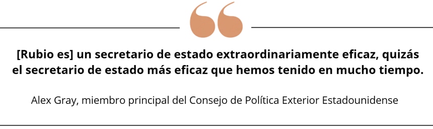 Rubio, que también ejerce como asesor de seguridad nacional, es considerado cada vez más en Washington como una fuerza en ascenso dentro de la Administración. Algunos lo han comparado con Henry Kissinger, que primero fue asesor de seguridad nacional y más tarde influyente secretario de Estado bajo los mandatos de los presidentes Richard Nixon y Gerald Ford.