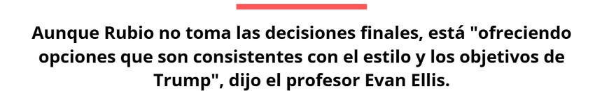 Aunque Rubio no toma las decisiones finales, "ofrece opciones que son coherentes con el estilo y los objetivos de Trump", dijo Ellis.