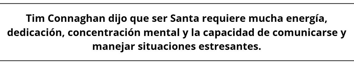 Connaghan dijo que ser Papá Noel requiere mucha energía, dedicación, concentración mental y la capacidad de comunicarse y manejar situaciones estresantes.