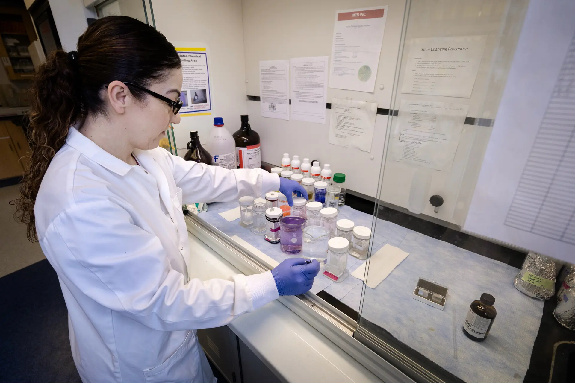 Una investigadora estudia la cicatrización de heridas cutáneas en un laboratorio de la Universidad de Illinois Chicago en Chicago el 5 de marzo de 2025. El 5 de enero, una corte federal de apelaciones dictaminó que la administración Trump no podía limitar el porcentaje que los Institutos Nacionales de Salud pagan a los beneficiarios de subvenciones por gastos indirectos, incluidos los gastos administrativos y el mantenimiento de las instalaciones. (Scott Olson/Getty Images)Relaciones con China