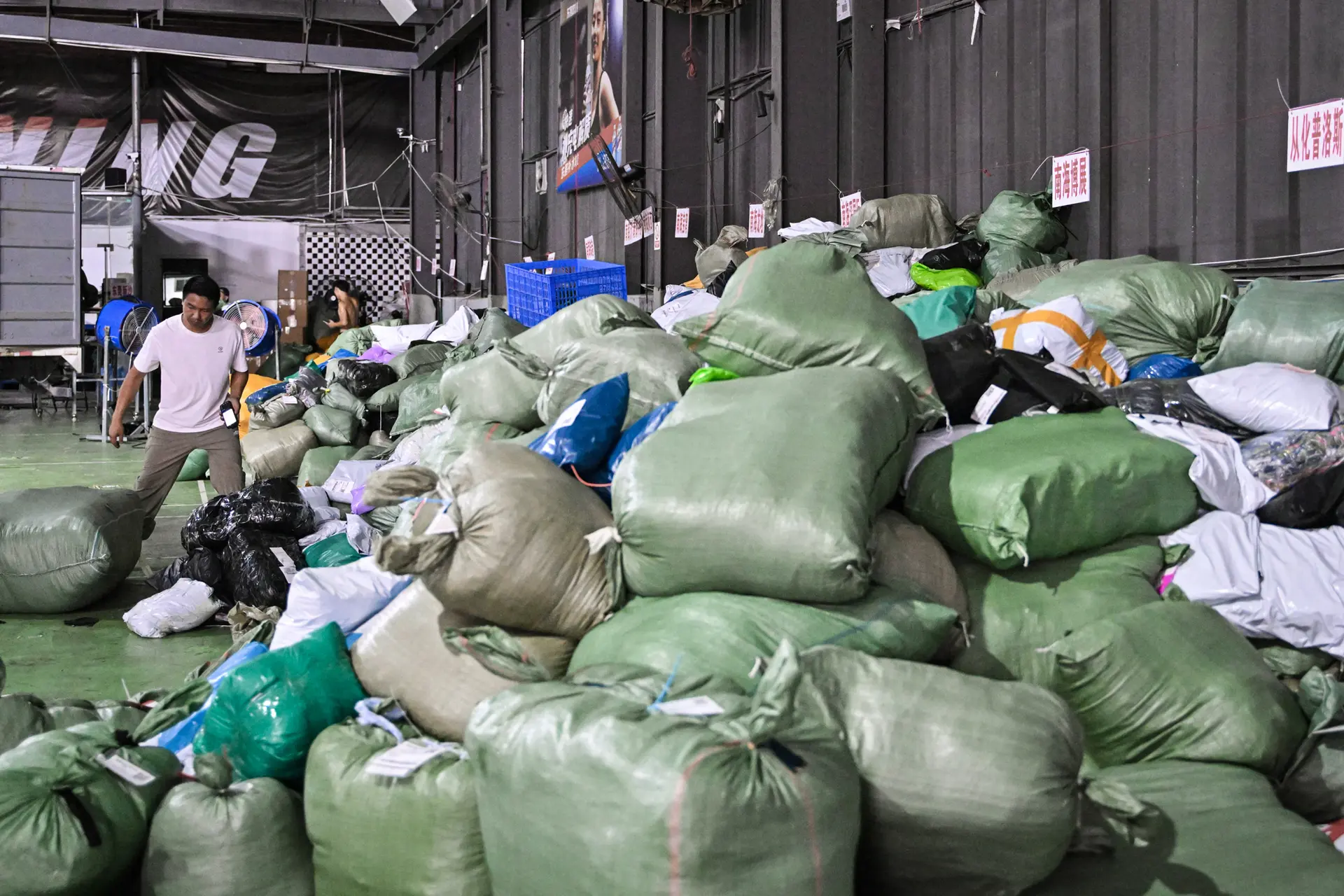 Un hombre trabaja en un almacén de la empresa de mensajería Weijiang International, que gestiona los envíos del gigante chino de las compras en línea Temu, en Guangzhou, provincia de Guangdong, China, el 12 de agosto de 2025. (Adek Berry/AFP vía Getty Images).Es poco probable que la cumbre entre Trump y Xi cambie las perspectivas