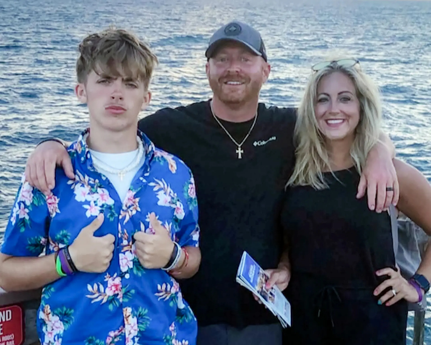 (De izquierda a derecha) Bryce Tate posa con sus padres, Adam y Amanda Tate, en esta foto familiar sin fecha. Bryce se quitó la vida en noviembre de 2025 tras un intercambio de varias horas con un depredador. (Cortesía de Adam Tate)Tate dijo que no se ha atrevido a leer los mensajes del teléfono de Bryce; el dolor es demasiado reciente. Pero la policía le dijo que todo comenzó como una conversación amistosa y terminó como un ataque intenso contra el joven de 15 años.