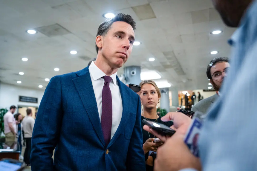 El senador Josh Hawley (R-Mo.) habla con los periodistas en el Capitolio, en Washington, el 9 de octubre de 2025. Hawley ha sido un crítico acérrimo de las empresas de redes sociales, que, según él, anteponen los beneficios a los niños. (Madalina Kilroy/The Epoch Times)Hawley y otros críticos afirman que las plataformas no cooperan porque no están obligadas a hacerlo.