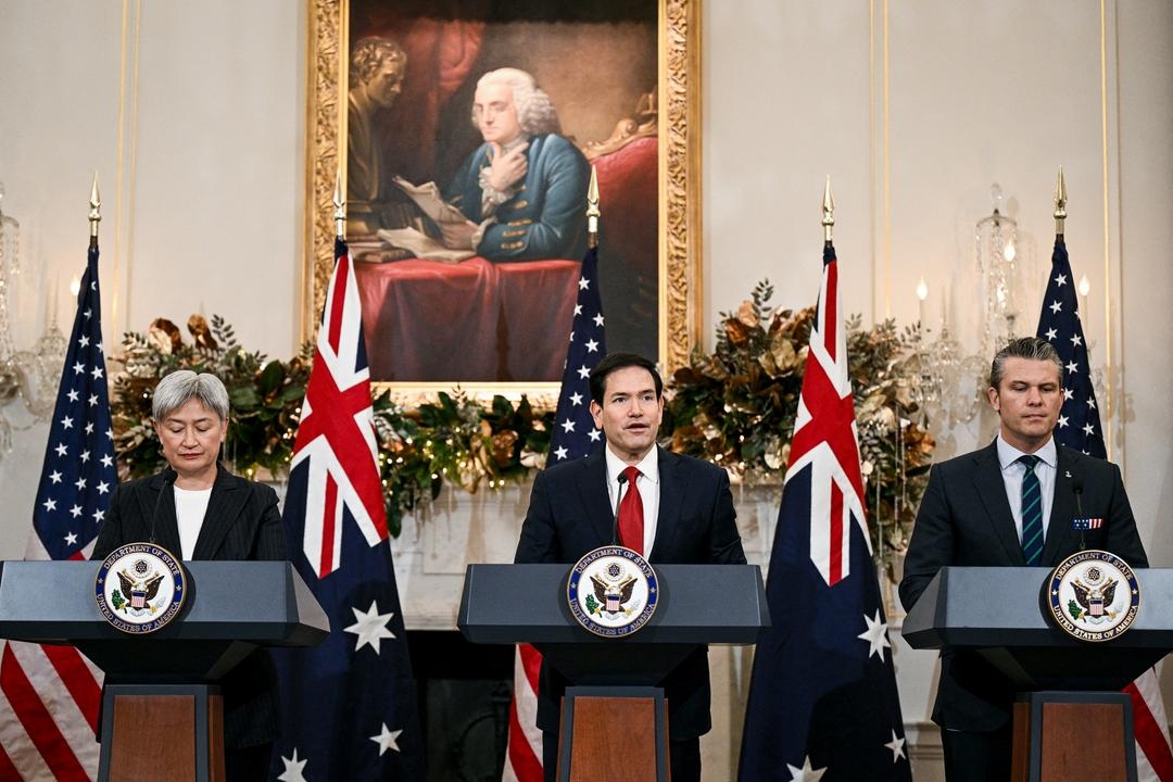 (De izquierda a derecha) La ministra de Relaciones Exteriores de Australia, Penny Wong, el secretario de Estado de EE. UU., Marco Rubio, y el secretario de Guerra de EE. UU., Pete Hegseth, pronuncian sus discursos durante la 35.ª Consulta Ministerial entre Australia y EE. UU. celebrada en Washington el 8 de diciembre de 2025. (Brendan Smilowski/AFP a través de Getty Images)La Ley de Materias Primas Críticas de Europa también exige que la mayor parte de las materias primas estratégicas se procesen dentro de la Unión Europea para 2030.