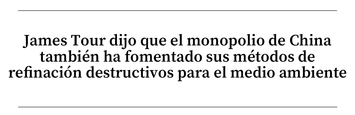 Tour dijo que el monopolio de China también ha dado lugar a métodos de refinado destructivos para el medio ambiente.