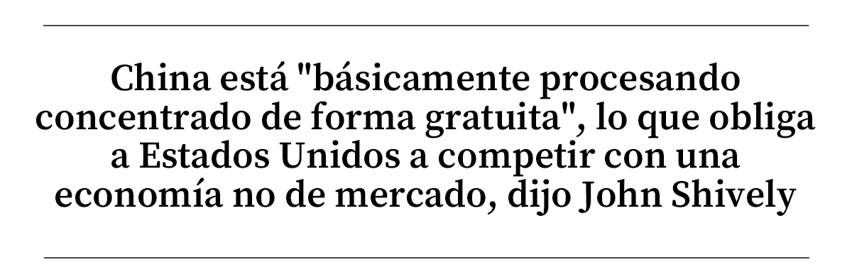 Según él, China "básicamente procesa el concentrado de forma gratuita", lo que obliga a Estados Unidos a competir con una economía no de mercado.