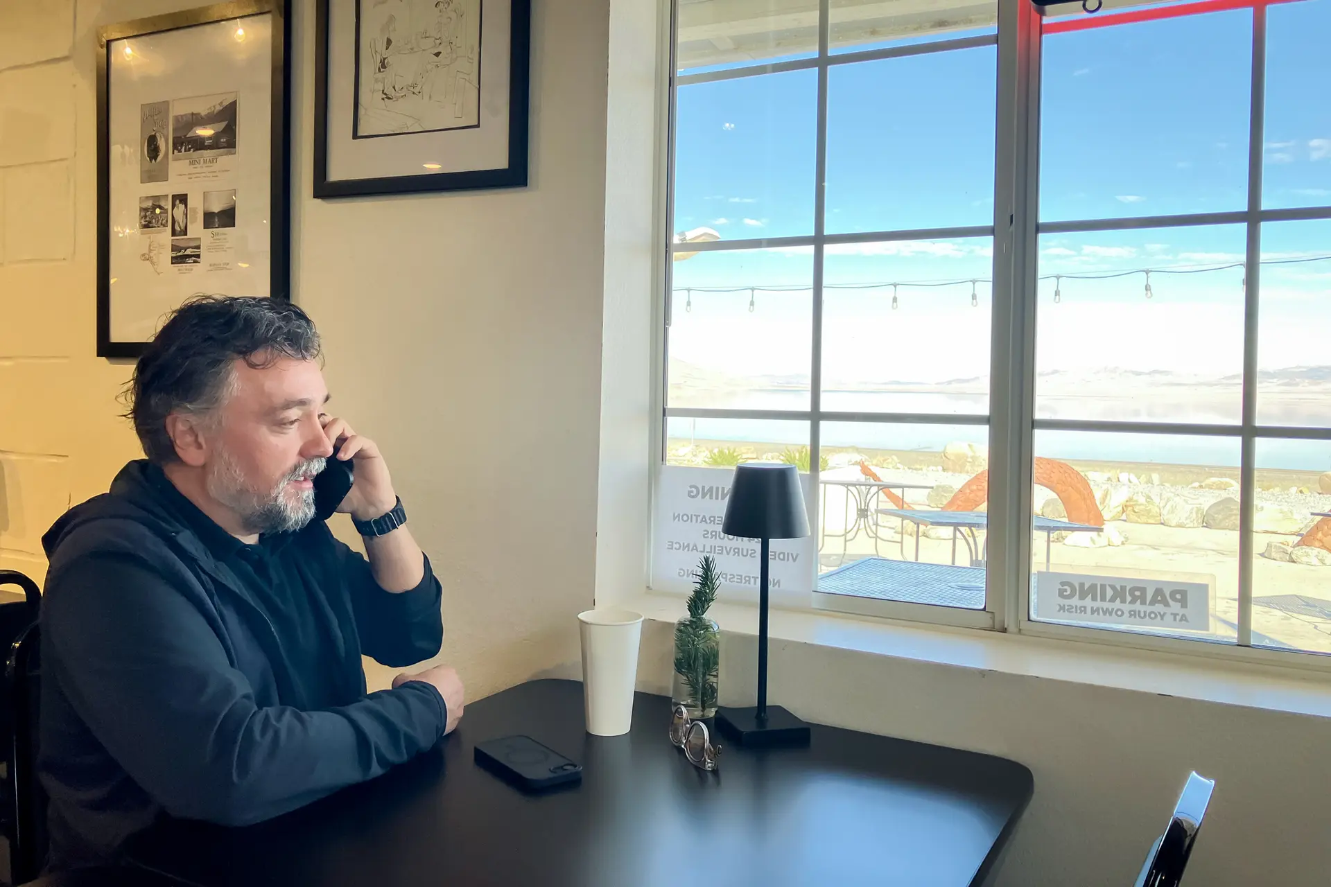 (Arriba) El comisionado del condado de Mineral, Tony Ruse, atiende una llamada telefónica en The Big Horn Crossing, un restaurante y tienda de conveniencia que es el único negocio minorista que queda en Walker Lake, Nevada, en enero de 2026. (Abajo) Walker Lake, una localidad de menos de 400 habitantes, se encuentra en las laderas del monte Grant, pero ya no alberga la pesquería, las regatas ni los restaurantes y hoteles frente al mar que en su día la convirtieron en un oasis en el desierto para turistas, pescadores y campistas, en el condado de Mineral, Nevada, en enero de 2026. (John Haughey/The Epoch Times).Marlene Bunch y su marido Glenn dirigen el Walker Lake Working Group, creado en 1991 para garantizar que el agua llegue al lago y sostenga su economía recreativa.