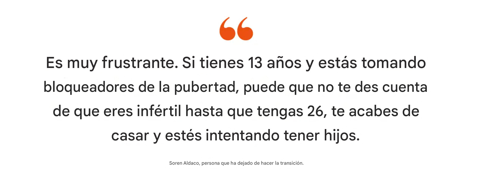 Pero este consentimiento dificultaría que quienes buscan cambiar su identidad de género puedan someterse a procedimientos médicos. Esto se debe a que dos profesionales de la salud —uno de los cuales debe ser terapeuta— deben certificar que el menor ha padecido disforia de género durante al menos dos años sin otros problemas de salud mental.