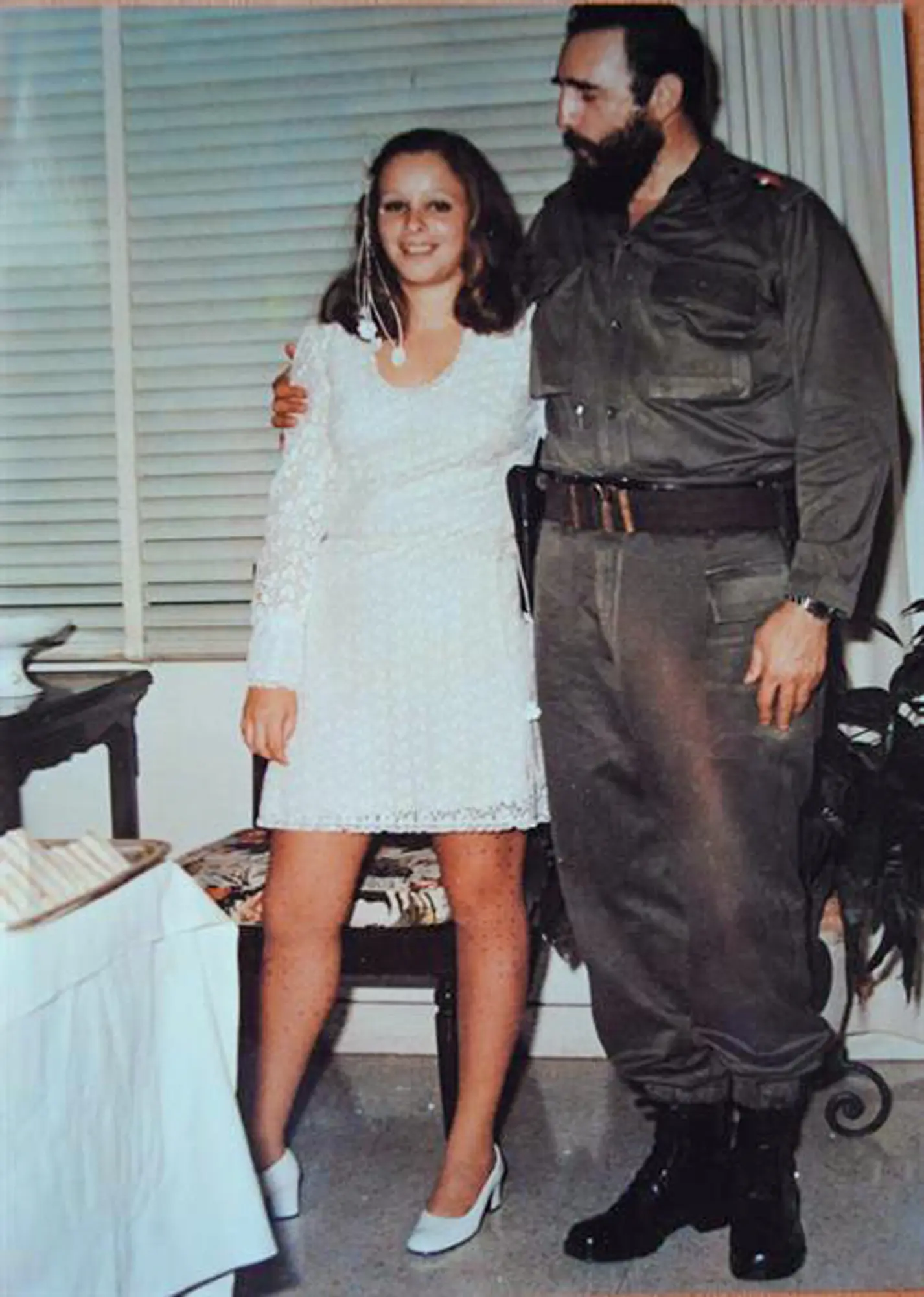 Alina Fernández Revuelta con Fidel Castro, celebrando su boda con Yoyi Jiménez en 1973. Desde muy joven, Fernández tomó conciencia de las realidades del comunismo y más tarde se convirtió en una de las críticas más abiertas del régimen de su padre. (Cortesía de Alina Fernández Revuelta)"Yo estaba en el bando disidente, así que para ella es una especie de doble carga. Era una adolescente y vivíamos lo que en aquel entonces llamábamos el Período Especial".